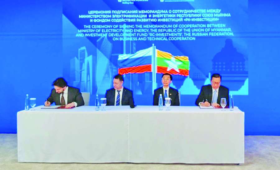ရုရှားဖက်ဒရေးရှင်းနိုင်ငံမှ မြန်မာနိုင်ငံသို့ ရေနံနှင့် ရေနံထွက်ပစ္စည်းများ ထောက်ပံ့ပေးနိုင်ရေးအပါအဝင် လျှပ်စစ်နှင့်စွမ်းအင်ကဏ္ဍတွင် ပူးပေါင်းဆောင်ရွက်မှုများ တိုးမြှင့်လုပ်ဆောင်နိုင်ရန် လျှပ်စစ်နှင့် စွမ်းအင်ဝန်ကြီးဌာနနှင့် ရုရှားဖက်ဒရေးရှင်းနိုင်ငံ Investment Development Fund “RC Investments” တို့အကြား ပူးပေါင်းဆောင်ရွက်မှုစာချွှန်လွှာ (Memorandum Of Cooperation) လက်မှတ်ရေးထိုး