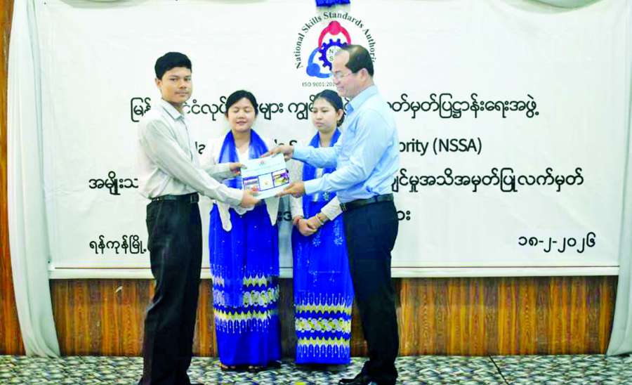 အမျိုးသားအဆင့် အလုပ်အကိုင်ဆိုင်ရာ ကျွမ်းကျင်မှုအသိအမှတ်ပြုလက်မှတ် ပေးအပ်ပွဲအခမ်းအနားကျင်းပ