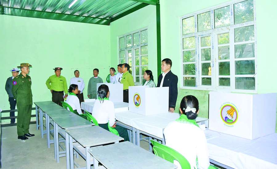 မန္တလေးတိုင်းဒေသကြီး ဝန်ကြီးချုပ် ဦးမျိုးအောင်သည် တိုင်းဒေသကြီးဝန်ကြီးများ၊ တာဝန်ရှိသူများနှင့်အတူ ယနေ့နံနက်ပိုင်းတွင် ပုသိမ်ကြီးမြို့နယ်အတွင်းရှိ ၂၀၂၆ ခုနှစ် ဇန်နဝါရီ ၂၅ ရက်တွင် ကျင်းပမည့် ၂၀၂၅ ခုနှစ် ပါတီစုံဒီမိုကရေစီအထွေထွေရွေးကောက်ပွဲ အပိုင်း (၃) အဖြစ် ကျင်းပမည့် မြို့နယ်ရှစ်မြို့နယ်တွင် ပါဝင်သော ပုသိမ်ကြီးမြို့နယ်ရှိ မဲပေးပိုင်ခွင့်ရှိသည့် မဲဆန္ဒရှင်ပေါင်း ၁၇၇၁၄၄ ဦးအတွက် မဲရုံပေါင်း ၁၃၉ ရုံ စနစ်တကျဖွင့်လှစ်ပြင်ဆင်ဆောင်ရွက်ထားရှိမှုကို လှည့်လည်ကြည့်ရှုသည်။