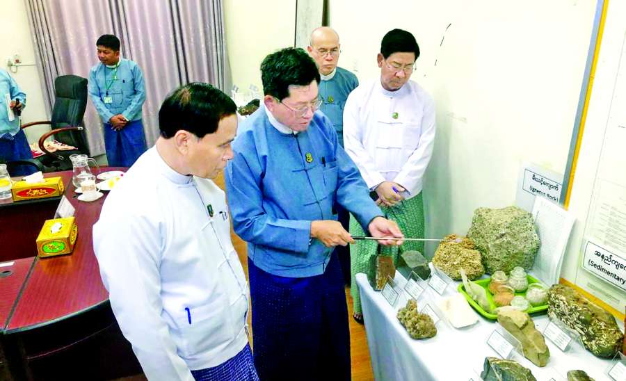 သယံဇာတနှင့်သဘာဝပတ်ဝန်းကျင်ထိန်းသိမ်းရေးဝန်ကြီးဌာန ပြည်ထောင်စုဝန်ကြီး ဦးဆန်းဦးသည် ဒုတိယဝန်ကြီး ဦးခင်လတ်ကြီးနှင့် ဒေါက်တာသောင်းနိုင်ဦး၊ အမြဲတမ်းအတွင်းဝန်၊ တာဝန်ရှိသူများနှင့်အတူ ယမန်နေ့က မြန်မာနိုင်ငံ၏ ဓာတ်သတ္တုသယံဇာတဖြစ်ထ