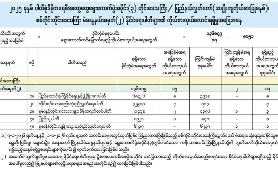ရန်ကုန်မြို့နှင့် မန္တလေးမြို့အတွက် ရည်ညွှန်းလက်ကားဈေးနှုန်းများနှင့် ပြည်ထောင်စုနယ်မြေ နေပြည်တော်၊ တိုင်းဒေသကြီး/ပြည်နယ် မြို့တော်များအတွက် ရည်ညွှန်းလက်လီဈေးနှုန်းများ