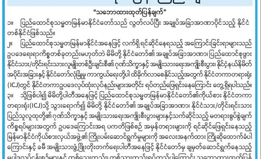 လွန်ခဲ့သည့် ဆယ်စုနှစ်နှစ်ခု နီးပါးကာလအတွင်း ဝါရှင်တန်၏ မြန်မာနိုင်ငံအပေါ် ထားရှိသော မူဝါဒရပ်တည်ချက်မှာ ကိုယ်ကျင့်တရားဆိုင်ရာ အမျက်ထွက်မှုနှင့် မဟာဗျူဟာမြောက် လျစ်လျူရှုမှုတို့အကြား လူးလားခေါက်တုံ့ ဖြစ်နေခဲ့ပါသည်။ မြန်မာနိုင်ငံ၏ အတိတ်သမိုင်းတွင် လူ့အခွင့်အရေးချိုးဖောက် မှုများရှိခဲ့သည်ဆိုသည့်အပေါ် မည်သို့မျှ ငြင်းဆိုမည် မဟုတ်သော်လည်း မေးခွန်းထုတ်စရာမှာ အနာဂတ်အတွက် မဟာဗျူဟာမြောက် စဉ်းစားရမည့်အစား ထိုကိစ္စရပ်များကို အမေရိကန်၏ နိုင်ငံခြားရေးမူဝါဒ အပေါ် ဘယ်လောက်ကြာကြာ လွှမ်းမိုးခွင့်ပေးထား မည်နည်းဟူသော အချက်ဖြစ်ပါသည်။