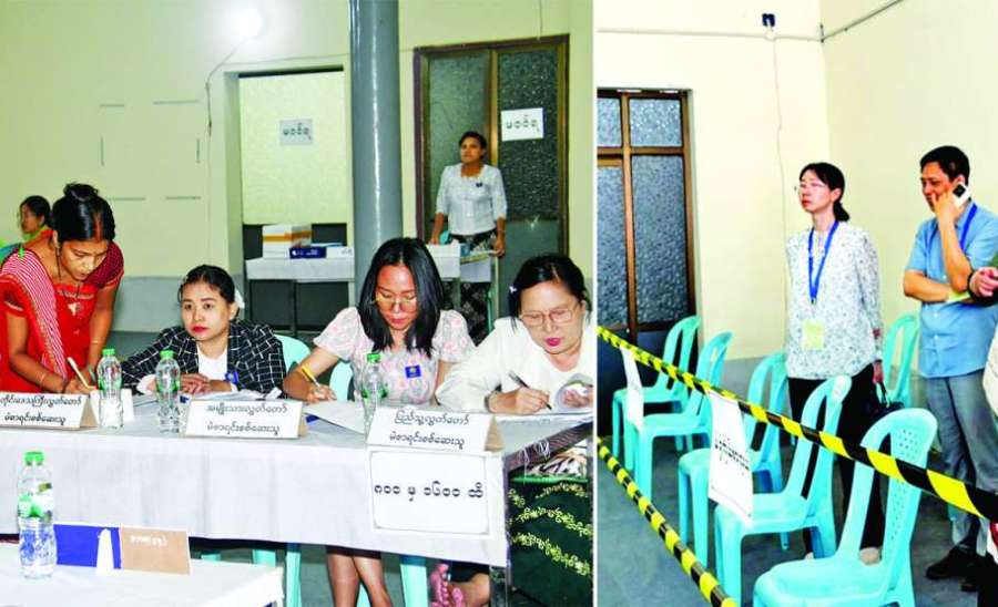 ဧရာဝတီတိုင်းဒေသကြီး ဝါးခယ်မမြို့နယ်အတွင်းရှိ မဲရုံအသီးသီး၌ မဲပေးပိုင်ခွင့်ရှိသူပြည်သူများ လာရောက်ဆန္ဒမဲပေးလျက်ရှိရာ မြေပြင်ကွင်းဆင်းစာရင်း ကောက်ယူရေးကြီးကြပ်မှုဗဟိုကော်မတီဥက္ကဋ္ဌ လူဝင်မှုကြီးကြပ်ရေးနှင့် ပြည်သူ့အင်အားဝန်