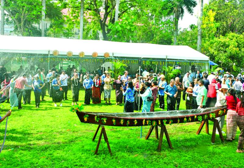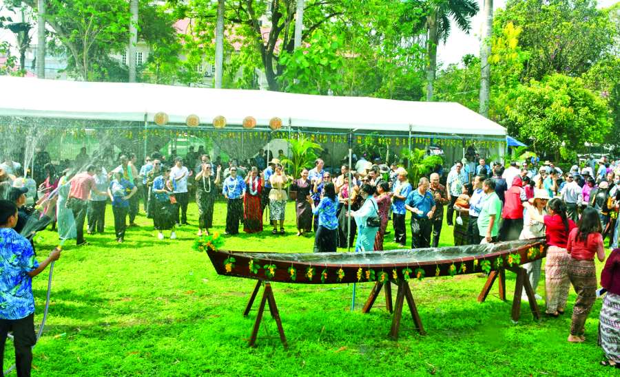 မြန်မာသက္ကရာဇ် ၁၃၈၇ ခုနှစ်မှ ၁၃၈၈ ခုနှစ်သို့ ကူးပြောင်းသည့် မဟာသင်္ကြန်ပွဲတော်တွင် ပြည်ထဲရေးဝန်ကြီးဌာန ဝန်ထမ်းမိသားစုများသည် မြန်မာ့ရိုးရာယဉ်ကျေးမှု အစဉ်အလာနှင့်အညီ မဟာသင်္ကြန်ပွဲတော်ကို ပျော်ရွှင်စွာဆင်နွှဲကြရာ ပြည်ထဲရေးဝန်ကြီး ဌာနမိသားစု မြန်မာ့ရိုးရာမဟာသင်္ကြန်ပွဲတော် ဖွင့်ပွဲအခမ်းအနားကို ယနေ့မွန်းလွဲပိုင်းတွင် နေပြည်တော် ဇမ္ဗူသီရိမြို့နယ် ရုံးအမှတ် (၃၈) ရှိ ပြည်ထဲရေးဝန်ကြီးဌာန ရေကစားမဏ္ဍပ်၌ ကျင်းပသည်။