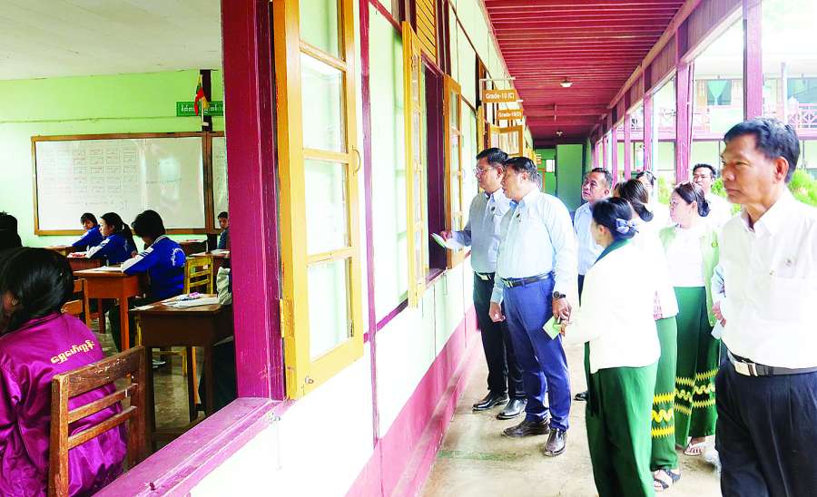 ပညာရေးဝန်ကြီးဌာန ဒုတိယဝန်ကြီး ဦးနေမျိုးလှိုင်သည် ရှမ်းပြည်နယ် လူမှုရေးရာဝန်ကြီး ဦးမင်းမင်းလွင်၊ တာဝန်ရှိသူများနှင့်အတူ ယနေ့နံနက်ပိုင်းတွင် တောင်ကြီးမြို့နယ်အတွင်း ၂၀၂၅- ၂၀၂၆ ပညာသင်နှစ် အခြေခံပညာမူလတန်းဆင့် Grade-5 နှင့် အခြေခံပညာအလယ်တန်းဆင့် Grade-9 တတ်မြောက်မှုစစ်ဆေးခြင်း နှစ်ဆုံးစာမေးပွဲကျင်းပနေမှုများကို ကြည့်ရှုစစ်ဆေးသည်။