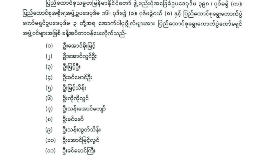 ပြည်ထောင်စုရွေးကောက်ပွဲကော်မရှင် အဖွဲ့ဝင်များ ခန့်အပ်တာဝန်ပေးခြင်း