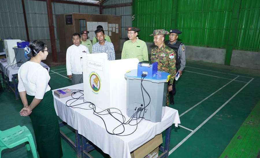 ပါတီစုံဒီမိုကရေစီအထွေထွေရွေးကောက်ပွဲအပိုင်း(၃) အောင်မြင်စွာ ကျင်းပနိုင်ရေးအတွက် ကြိုတင်ပြင်ဆင်မှုများဆောင်ရွက်နေသည့် တနင်္သာရီတိုင်းဒေသကြီး၊ ပုလောမြို့နယ်နှင့် ပုလောက်မြို့နယ်တို့ရှိ မဲရုံနေရာများအားယနေ့တွင် ကမ်းရိုးတန်းဒေသတိုင်းစစ်ဌာနချုပ် တိုင်မှူးဗိုလ်ချုပ် ကျော်ကျော်ဟန်နှင့် တာဝန်ရှိသူများက သွားရောက်စစ်ဆေးရာ တာဝန်ရှိသူများက အီလက်ထရောနစ်မဲပေးစက်(MEVM)များ ရောက်ရှိမှုအခြေအနေ၊ မဲပေးစက်များထားရှိမည့်နေရာ၊ မဲပုံးများထားရှိမည့်နေရာ စသည်ဖြင့် ကြိုတင်ပြင်ဆင်ထားရှိမှုများကို ရှင်းလင်းတင်ပြကြပြီး တင်ပြချက်များအပေါ်တိုင်းမှူးက လိုအပ်သည်များ ပေါင်းစပ်ညှိနှိုင်းဆောင်ရွက်ပေးသည်။