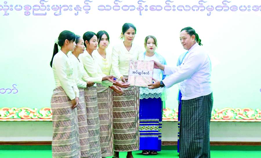 အသေးစားကုန်ထုတ်လုပ်ငန်းများဖန်တီးပေးနိုင်ရေးနှင့် ကျေးလက်နေမိသားစုဝင်ငွေတိုးရေး စီမံကိန်းလုပ်ငန်းဆိုင်ရာ လုပ်ငန်းသုံးပစ္စည်းများနှင့် သင်တန်းဆင်းလက်မှတ်များ ပေးအပ်ပွဲအခမ်းအနား ကို ယနေ့နံနက်ပိုင်းက နေပြည်တော်ကောင်စီနယ်မြေ