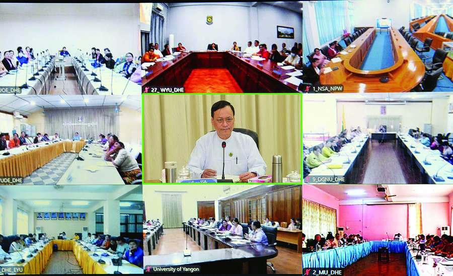 ပညာရေးဝန်ကြီးဌာန သိပ္ပံပွဲတော်အောင်မြင်စွာ ကျင်းပရေးနှင့် တက္ကသိုလ်ဝင် စာမေးပွဲမအောင်မြင်သည့် ကျောင်းသား ကျောင်းသူများအတွက် အလုပ်အကိုင်ရရှိရေး ကျွမ်းကျင်မှုဆိုင်ရာသင်တန်းများ ဖွင့်လှစ်နိုင်ရေး ညှိနှိုင်းဆွေးနွေးပွဲကို ယနေ့မွန်းလွဲပိုင်းတွင် နေပြည်တော်ပညာရေးဝန်ကြီးဌာန ရုံးအမှတ် (၁၃) ရှိ အစည်းအဝေးခန်းမ၌ ကျင်းပသည်။