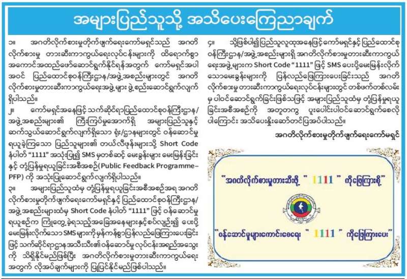 အများပြည်သူသို့ အသိပေးကြေညာချက်