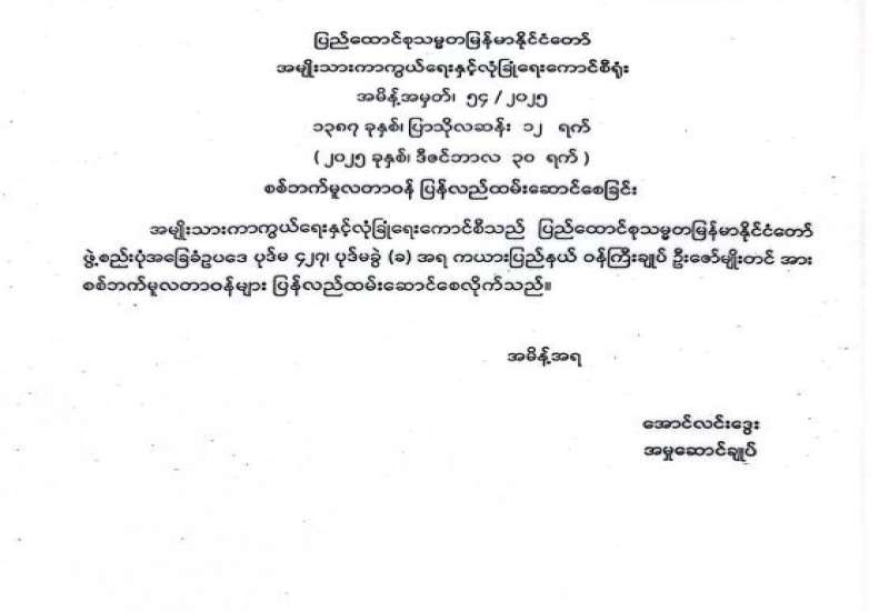 ပြည်သူ့လွှတ်တော်ကိုယ်စားလှယ်အဖြစ် ရွေးကောက်တင်မြှောက်ခံရသူများ အမည်စာရင်း ကြေညာခြင်း