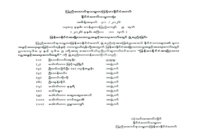 တိုင်းဒေသကြီး သို့မဟုတ် ပြည်နယ်တိုင်းရင်းသားလူမျိုးရေးရာဝန်ကြီးများ ခန့်အပ်တာဝန်ပေးခြင်း