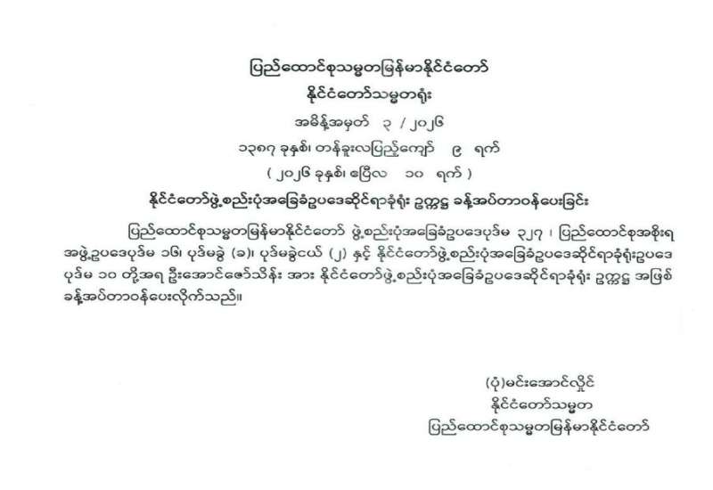 ပြည်ထောင်စုရွေးကောက်ပွဲကော်မရှင်ဥက္ကဋ္ဌ ခန့်အပ်တာဝန်ပေးခြင်း