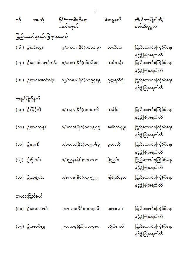 ပြည်သူ့လွှတ်တော်ကိုယ်စားလှယ်အဖြစ် ရွေးကောက်တင်မြှောက်ခံရသူများ အမည်စာရင်း ကြေညာခြင်း