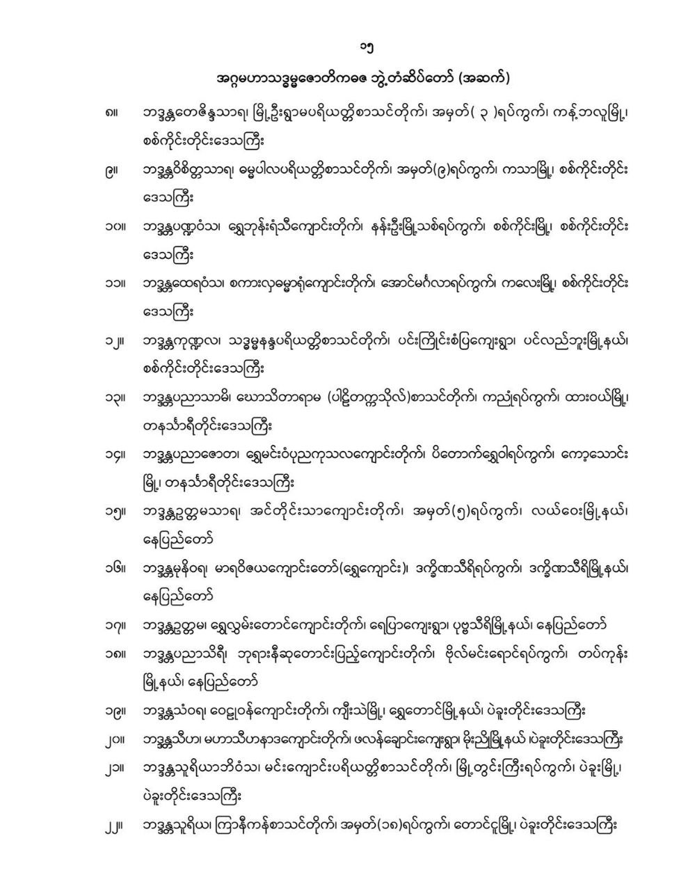 နိုင်ငံတော်အစိုးရ၏ ကြေညာချက်များ