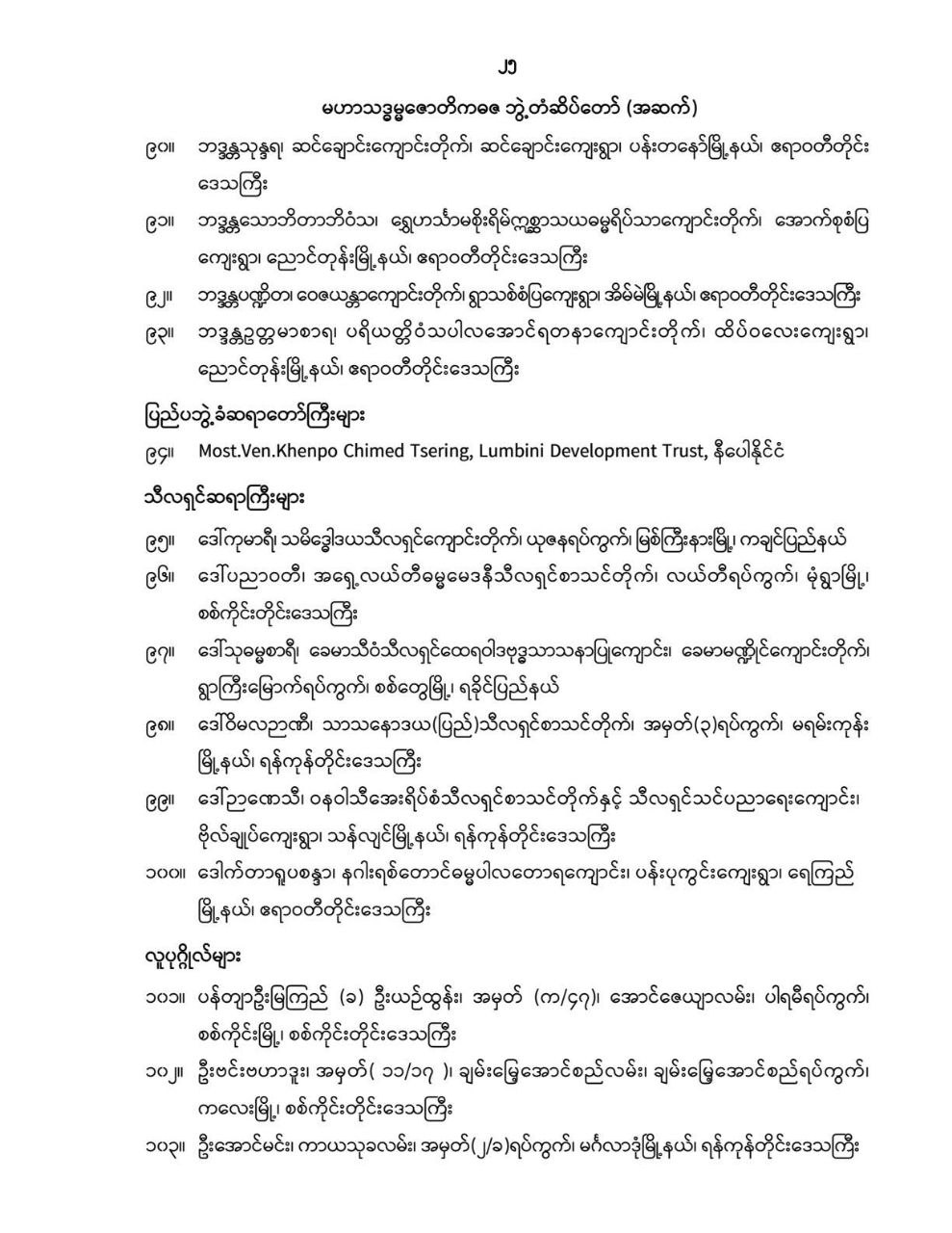 သာသနာတော်ဆိုင်ရာ ဘွဲ့တံဆိပ်တော်များ ဆက်ကပ်လှူဒါန်း