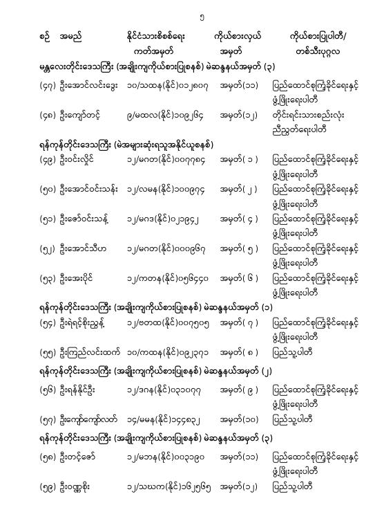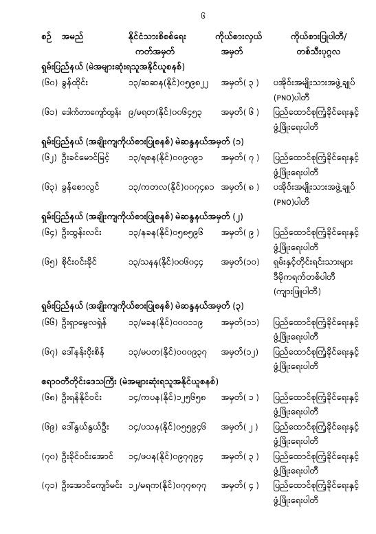 အမျိုးသားလွှတ်တော်ကိုယ်စားလှယ်အဖြစ် ရွေးကောက်တင်မြှောက်ခံရသူများ အမည်စာရင်း ကြေညာခြင်း