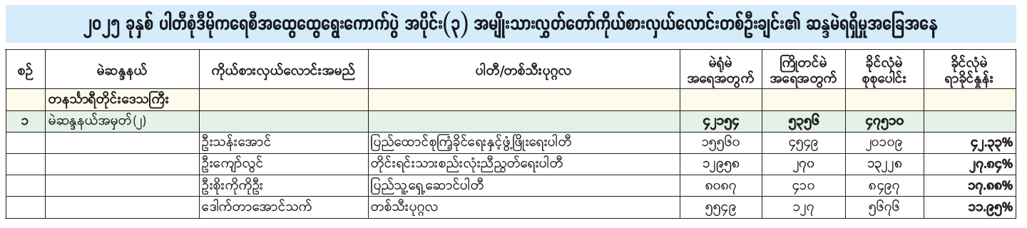 ၂၀၂၅ ခုနှစ် ပါတီစုံဒီမိုကရေစီအထွေထွေရွေးကောက်ပွဲ အပိုင်း(၃) အမျိုးသားလွှတ်တော်ကိုယ်စားလှယ်လောင်းတစ်ဦးချင်း၏ ဆန္ဒမဲရရှိမှုအခြေအနေ 01/30/2026