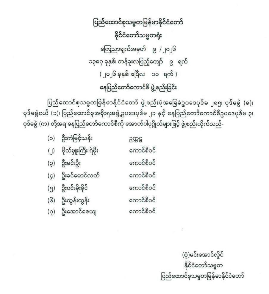 နေပြည်တော်ကောင်စီ ဖွဲ့စည်းခြင်း