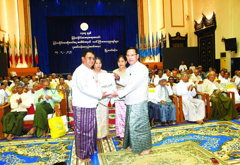 မြန်မာနိုင်ငံ စာရေးဆရာအသင်း၏ ၁၃၈၇ ခုနှစ် စာဆိုတော်နေ့အထိမ်းအမှတ် သက်ကြီးစာပေပညာရှင်များ ပူဇော်ကန်တော့ပွဲအခမ်းအနားကို ယနေ့နံနက် ၉ နာရီတွင် ရန်ကုန်မြို့ မြို့တော်ခန်းမ၌ ကျင်းပရာ နိုင်ငံတော်ယာယီသမ္မတ နိုင်ငံတော်လုံခြုံရေးနှင့်အေးချမ်းသာယာရေးကော်မရှင်ဥက္ကဋ္ဌ တပ်မတော်ကာကွယ်ရေးဦးစီးချုပ် ဗိုလ်ချုပ်မှူးကြီး မင်းအောင်လှိုင်နှင့် ဇနီး ဒေါ်ကြူကြူလှတို့က ငွေကျပ် ၁၄၅ သိန်း ကျော်တန်ဖိုးရှိ အဝတ်အထည်နှင့် အသုံးအဆောင်ပစ္စည်းများအား လှူဒါန်းသည်။