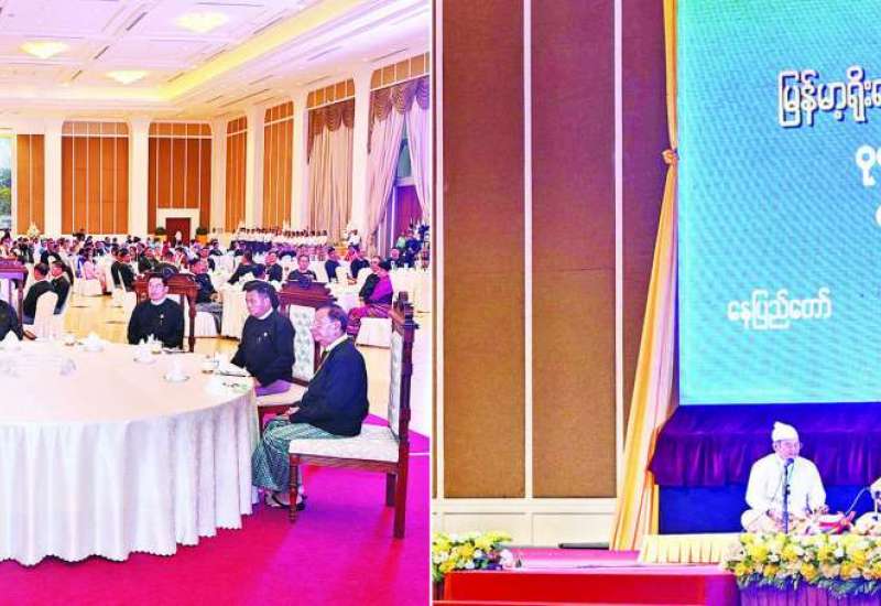 ကိုဗစ် - ၁၉ ရောဂါ ကာကွယ်၊ ထိန်းချုပ်၊ ကုသရေးဆိုင်ရာ (၁၁)ကြိမ်မြောက် ညှိနှိုင်းအစည်းအဝေးကို ယနေ့နံနက်ပိုင်းတွင် နေပြည်တော်ရှိ ဘုရင့်နောင်ရိပ်သာ အစည်းအဝေးခန်းမ၌ ကျင်းပပြုလုပ်ရာ နိုင်ငံတော်စီမံအုပ်ချုပ်ရေးကောင်စီ ဥက္ကဋ္ဌ၊ ပြည်ထောင်စုသမ္မတ မြန်မာနိုင်ငံတော် အိမ်စောင့်အစိုးရအဖွဲ့၊ နိုင်ငံတော်ဝန်ကြီးချုပ် ဗိုလ်ချုပ်မှူးကြီး မင်းအောင်လှိုင် တက်ရောက်အမှာစကား ပြောကြားသည်။