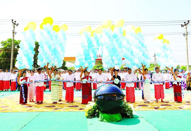 ထို့နောက် ပြည်ထောင်စုဝန်ကြီးနှင့်အဖွဲ့သည် စီမံကိန်းလုပ်ငန်းခွင်အတွင်း ဓာတ်အားလိုင်းကြိုးဆွဲခြင်းလုပ်ငန်း ဆောင်ရွက်နေမှုကို လှည့်လည်ကြည့်ရှု စစ်ဆေးသည်။