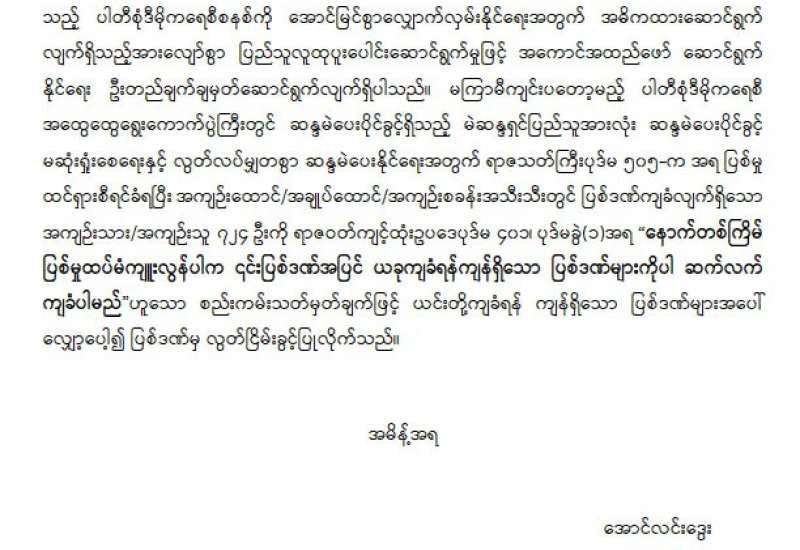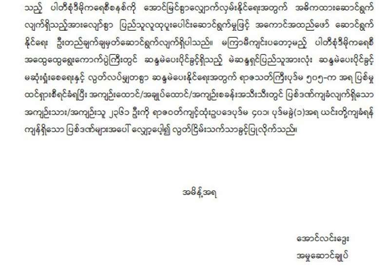 လာမည့်အပတ် ဗုဒ္ဓဟူးနေ့မွန်းလွဲ ၁ နာရီတွင် “ကုန်စည် ပို့ဆောင်ရေးလမ်းကြောင်းများ ပိတ်ဆို့ဖျက်ဆီး၍ ကုန်ပစ္စည်းရှားပါးပြတ်လပ်ကာ ပြည်သူတွေစားဝတ်နေရေးခက်ခဲအောင် ပြုလုပ်နေတဲ့ NUG နဲ့ PDF အကြမ်းဖက်သမားများ” ခေါင်းစဉ်ဖြင့် ဆွေးနွေးတင်ဆက်မည်ဖြစ်သောကြောင့် ပါဝင်ဆွေးနွေးလိုသူ ပရိသတ်များအနေဖြင့် အပတ်စဉ် ကြာသပတေးနေ့ နံနက် ၁၀ နာရီမှ ၁၁ နာရီအတွင်း ဖုန်းနံပါတ် ၀၉-၈၉၉၀၉၉၅၉၅ သို့ အမည်၊ နေရပ်လိပ်စာ၊ အလုပ်အကိုင်နှင့် ပြန်လည်ဆက်သွယ်ရမည့် ဖုန်းနံပါတ်တို့ကို Message ပေးပို့ပါဝင်နိုင်ပြီဖြစ်ကြောင်းနှင့် ပါဝင်လာသည့် ပရိသတ်များ၏ ဖုန်းနံပါတ်များနှင့် ကိုယ်ရေးအချက်အလက်များအား လျှို့ဝှက်ပေး ထားမည်ဖြစ်ကြောင်း သိရသည်။