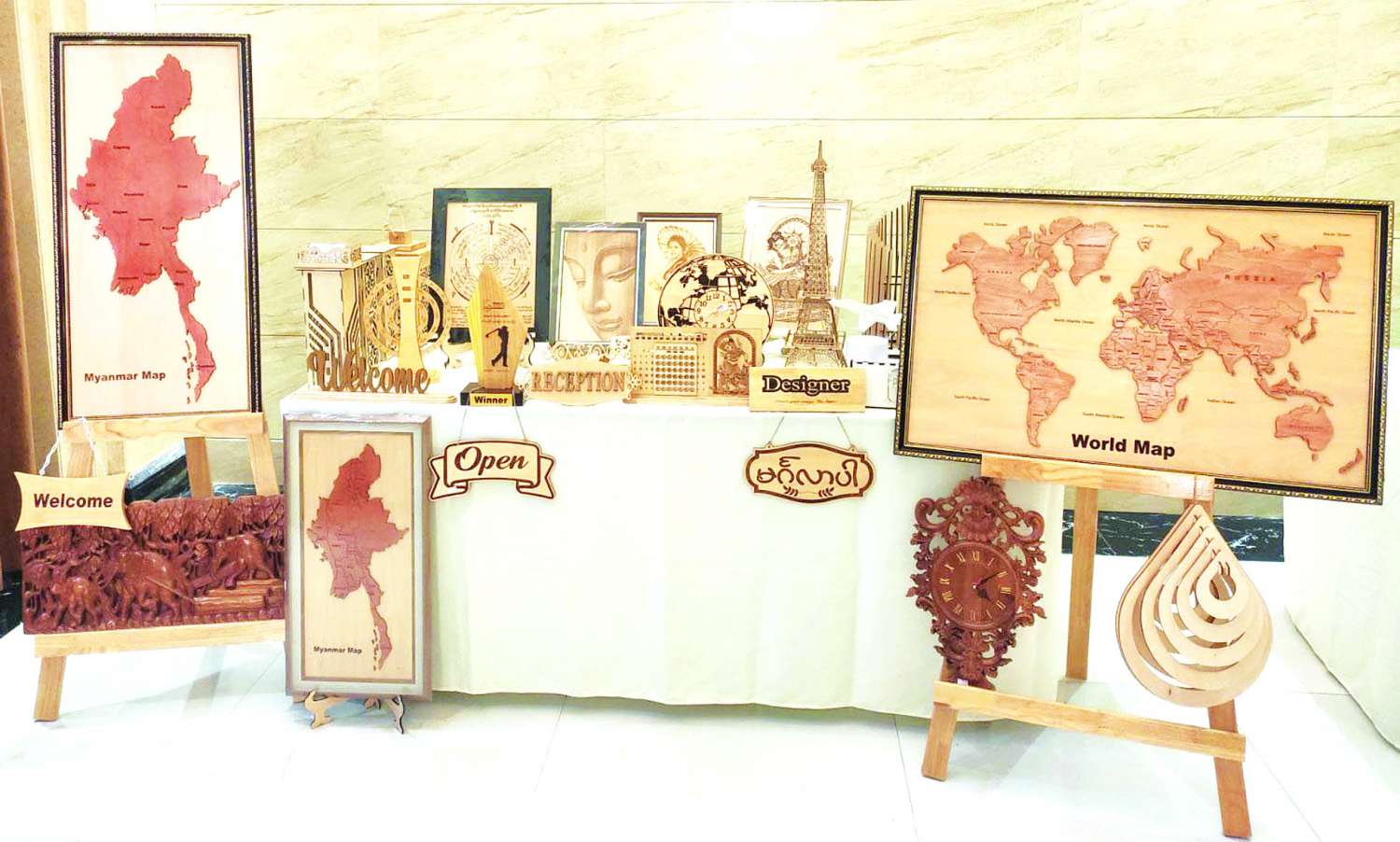 မေး။ ။ ပုံရိပ် CNC သစ်ထွင်းလေဆာပန်းချီလုပ်ငန်းရဲ့ ထုတ်ကုန်တွေကို အများပြည်သူသိရှိအောင် ဆောင်ရွက်ပုံနဲ့ ရှေ့ဆက်ပြီး ဆောင်ရွက်မယ့်လုပ်ငန်းကိုလည်း သိပါရစေ။