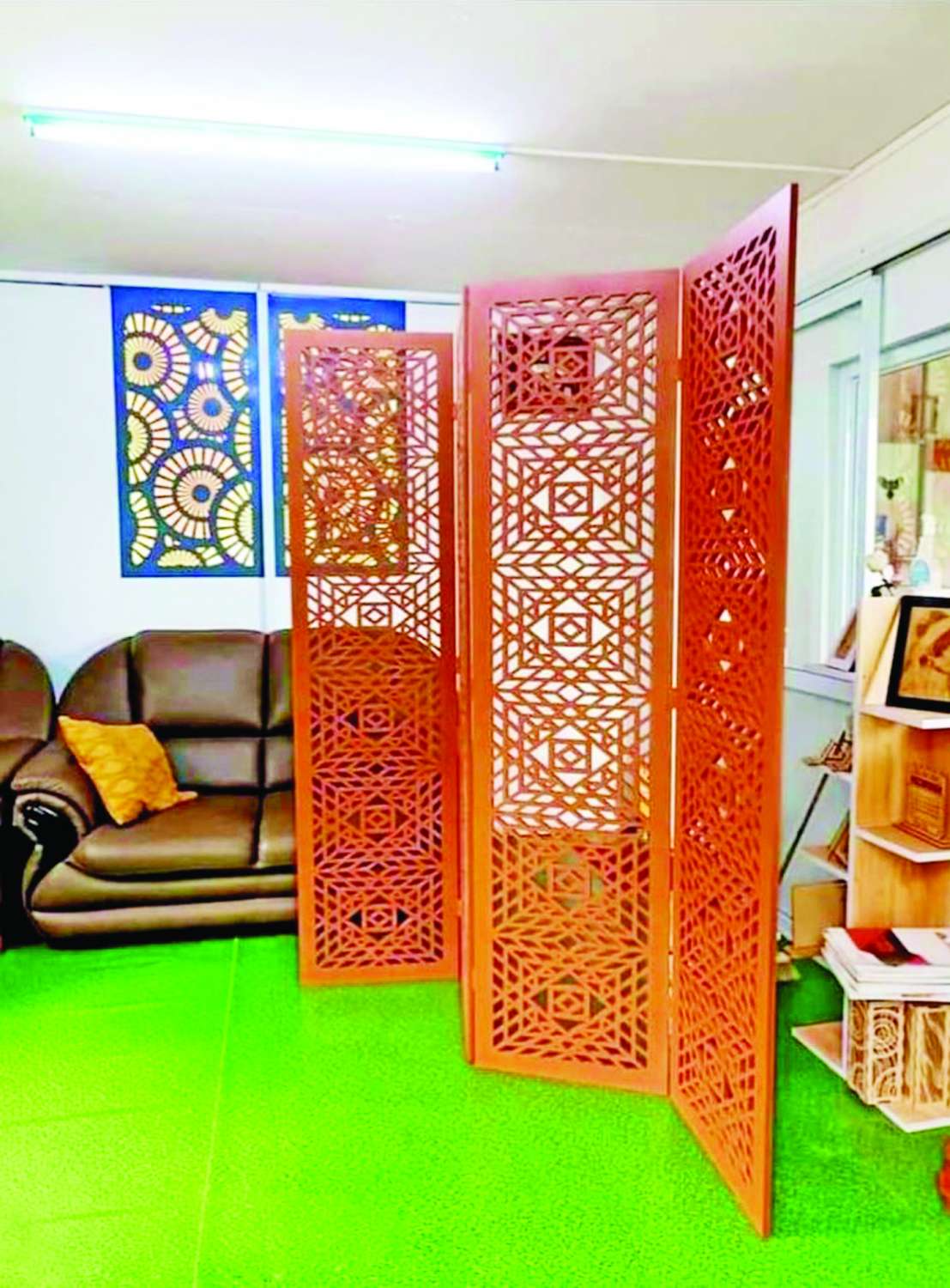 ဖြေ။ ။ ဒီဇိုင်းကို ကိုယ်တိုင်ဆွဲပါတယ်။ ပစ္စည်းဖြတ်ဖို့အတွက်၊ CNC Router စက်ကို မောင်းဖို့အတွက် စက်မောင်းပညာကိုတော့ လုပ်သားကိုပြန်သင်ပေးပါတယ်၊ တချို့ဆိုရင်ကွန်ပျူတာအခြေခံတောင် မရှိတဲ့သူတွေ ရောက်လာတာမျိုး ရှိပါတယ်။