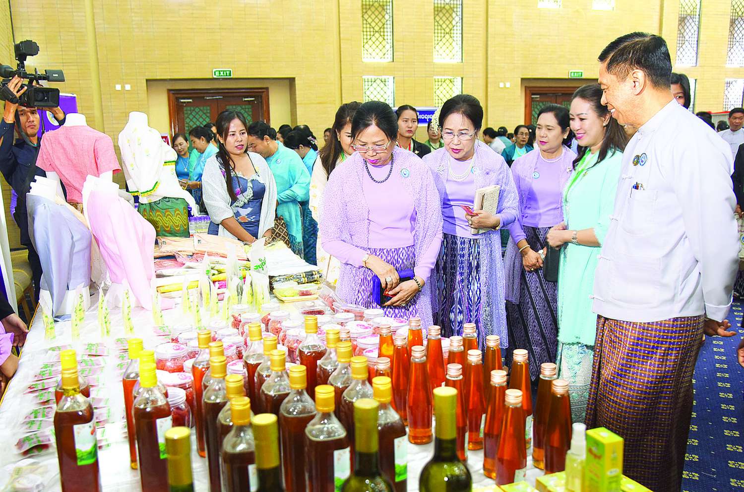 ဆက်လက်၍ မြန်မာနိုင်ငံအမျိုးသမီးရေးရာအဖွဲ့ချုပ် ဂုဏ်ထူးဆောင်နာယက နိုင်ငံတော်စီမံ အုပ်ချုပ်ရေးကောင်စီဥက္ကဋ္ဌ နိုင်ငံတော်ဝန်ကြီးချုပ်၏ဇနီး ဒေါ်ကြူကြူလှသည် အခမ်းအနားသို့တက်ရောက် လာကြသူများနှင့်အတူ စုပေါင်းမှတ်တမ်းတင်ဓာတ်ပုံရိုက်ပြီး အပြည်ပြည်ဆိုင်ရာအမျိုးသမီးများနေ့ အထိမ်းအမှတ်အဖြစ် ခင်းကျင်းပြသထားသည့် အမျိုးသမီးကျောင်းများနှင့် အမျိုးသမီးအသင်းအဖွဲ့များ၏ ထုတ်ကုန်ပစ္စည်းများကို လှည့်လည်ကြည့်ရှုကြသည်။