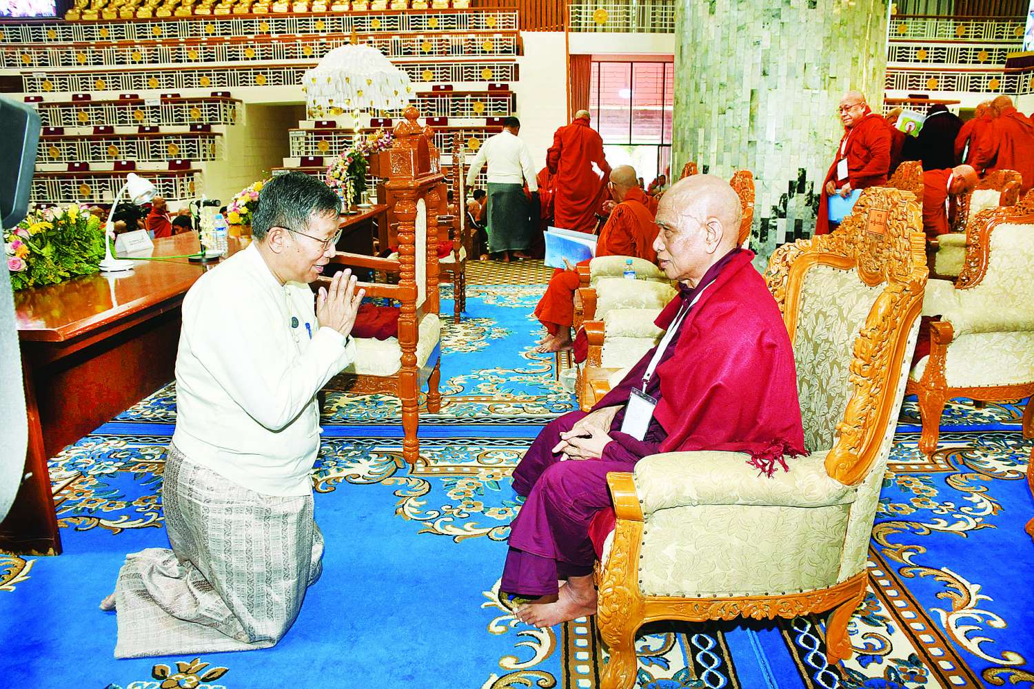 အစည်းအဝေး၏ သဘာပတိဆရာတော်အဖြစ် နိုင်ငံတော်ဗဟိုသံဃာ့ဝန်ဆောင်အဖွဲ့ ဒုတိယဥက္ကဋ္ဌ၊ အဂ္ဂမဟာပဏ္ဍိတ အဂ္ဂမဟာသဒ္ဓမ္မဇောတိကဓဇ ဘဒ္ဒန္တကောဝိဒက ဆောင်ရွက်တော်မူပြီး အခမ်းအနားမှူး ဆရာတော်အဖြစ် တွဲဖက်အကျိုးတော်ဆောင်၊ အဂ္ဂမဟာဂန္ထဝါစကပဏ္ဍိတ အဂ္ဂမဟာသဒ္ဓမ္မ ဇောတိကဓဇ ဘဒ္ဒန္တပညာဓဇက ဆောင်ရွက်တော်မူသည်။