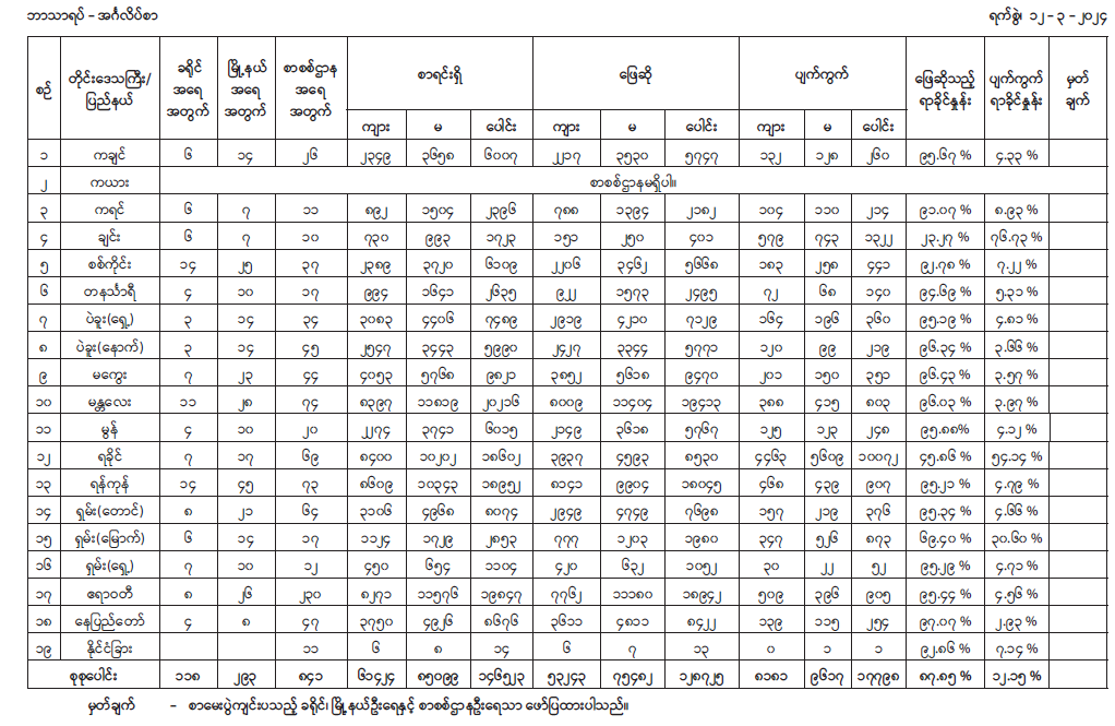 ယခုနှစ်တွင် နိုင်ငံခြားစာစစ်ဌာန ၁၁ ခုနှင့် ပြည်တွင်းစာစစ်ဌာန ၈၃၀ စာစစ်ဌာန စုစုပေါင်း ၈၄၁ ခု ဖွင့်လှစ်ဖြေဆိုခဲ့ရာ စာမေးပွဲဖြေဆိုရန် စာရင်းပေးသွင်းသူဦးရေ စုစုပေါင်း ၁၄၆၅၂၃ ဦးရှိပြီး စာမေးပွဲဒုတိယနေ့ အင်္ဂလိပ်စာဘာသာရပ်တွင် လာရောက်ဖြေဆိုသူ စုစုပေါင်း ၁၂၈၇၂၅ ဦး၊ ပျက်ကွက် ၁၇၇၉၈ ဦးရှိသဖြင့် ဖြေဆိုသူ ၈၇ ဒသမ ၈၅ ရာခိုင်နှုန်း ရှိကြောင်း ပညာရေးဝန်ကြီးဌာနမှ သိရသည်။