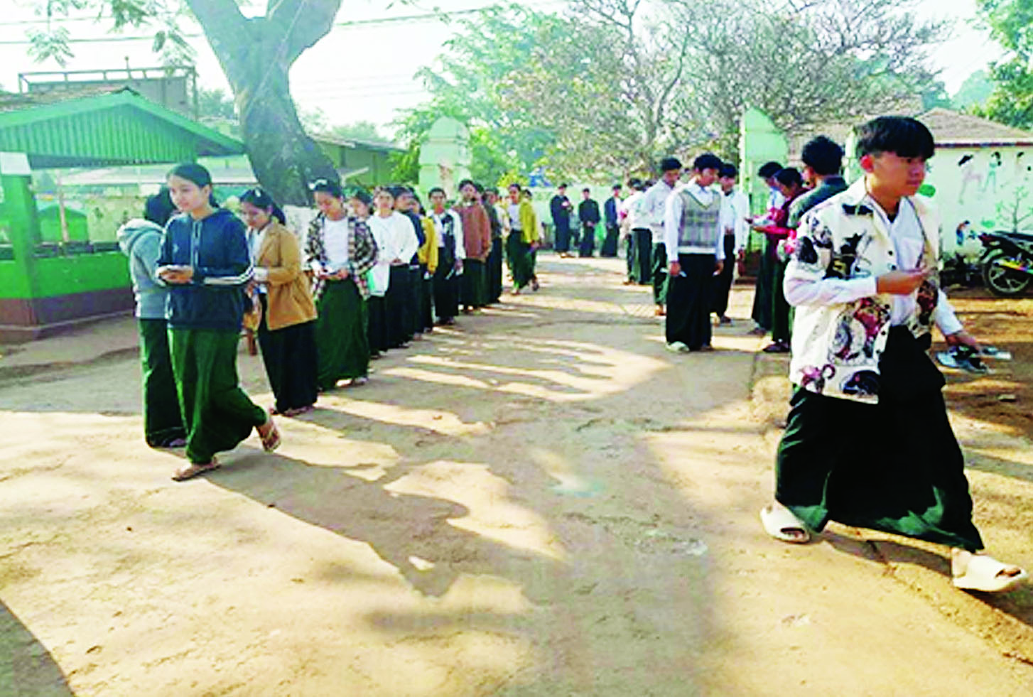 ဦးစွာ စာမေးပွဲဖြေဆိုခြင်းမပြုမီ ဆရာ ဆရာမများက ကျောင်းသား ကျောင်းသူများအား စာမေးပွဲဖြေဆိုခွင့်ကတ်များ မှန်/မမှန်စစ်ဆေးခြင်းများနှင့် လိုအပ်သည့် စစ်ဆေးမှုများကို စာမေးပွဲစည်းမျဉ်းစည်းကမ်းများနှင့်အညီ စနစ်တကျ ဆောင်ရွက်ကြသည်။ ယင်းသို့ ကျောင်းသား ကျောင်းသူများ စိတ်အေးချမ်းသာစွာဖြေဆို နိုင်ရေးအတွက် ကျောင်းဝင်းအတွင်းနှင့် အပြင်များ၌ သက်ဆိုင် ရာလုံခြုံရေးအဖွဲ့ဝင်များ၊ ကျန်းမာရေးဝန်ထမ်းများ၊ မီးသတ်တပ်ဖွဲ့ဝင်များနှင့် ရပ်ကွက်/ ကျေးရွာ အုပ်ချုပ်ရေးအဖွဲ့ဝင်များက စနစ်တကျစောင့်ကြပ် ကြည့်ရှုပေးလျက်ရှိသည်။