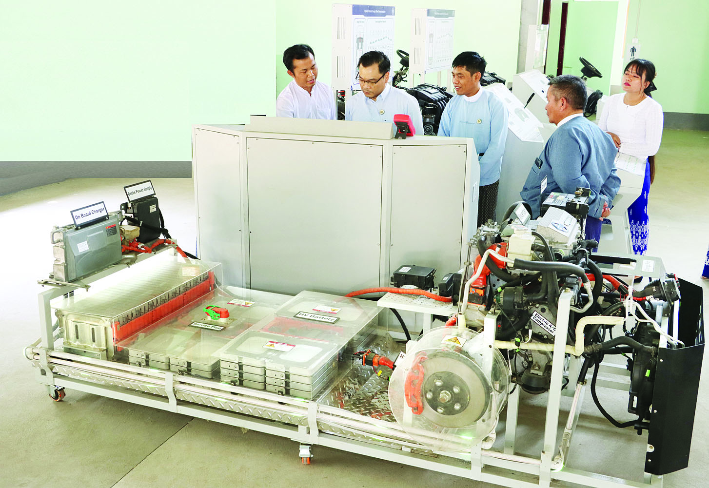 ယင်းနောက် ဒုတိယဝန်ကြီးသည် EV အလုပ်ရုံကို ကြည့်ရှုစစ်ဆေးကာ ဖွံ့ဖြိုးပြောင်းလဲမှု မြန်ဆန်လျက် ရှိသော EV နည်းပညာအရွေ့များအတိုင်း အမီလိုက်ပါကာ လေ့ကျင့်သင်ကြားပေးနိုင်ရေးနှင့် EV သုံးစွဲသူ ပြည်သူများအပါအဝင် EV Stakeholders များ၏ လက်ဝယ်အရောက် EV နည်းပညာများကို ထိရောက်ပီပြင်စွာ ဖြန့်ဝေပေးနိုင်ရေး အလေးထားဆောင်ရွက်သွားရန်နှင့် အခြားလိုအပ်သည်များ မှာကြားခဲ့ကြောင်း သိရသည်။