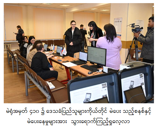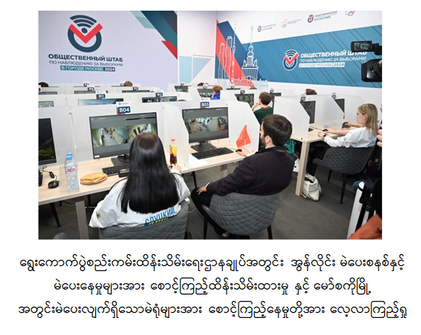 ရုရှားဖက်ဒရေးရှင်းနိုင်ငံ President of the Civic Chamber of the Russian Federation ၏ဖိတ်ကြားမှုအရ မြန်မာ-ရုရှားချစ်ကြည်ရေးအသင်း၏ စီစဉ်ပေးမှုဖြင့် ၂၀၂၄ ခုနှစ်၊ မတ်လ ၁၅ ရက်နေ့မှ ၁၇ ရက်နေ့အထိကျင်းပသော ရုရှားဖက်ဒရေးရှင်းနိုင်ငံ သမ္မတရွေးကောက်ပွဲအား သတင်းမှတ်တမ်းရယူရိုက်ကူးရန်နှင့် ရုရှားနိုင်ငံအတွင်း မီဒီယာပိုင်းဆိုင်ရာ ပူးပေါင်းလေ့လာရေးများ ဆောင်ရွက်ရန်အတွက် မြန်မာမီဒီယာအဖွဲ့သည် ရုရှားဖက်ဒရေးရှင်းနိုင်ငံ၊ မော်စကိုမြို့သို့ သွားရောက်ခဲ့ကြသည်။