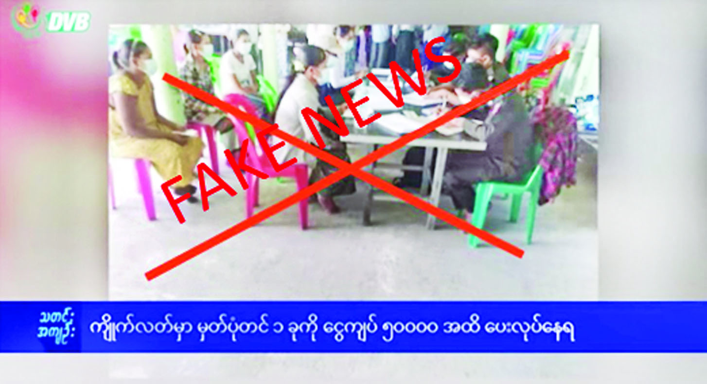 ဧရာဝတီတိုင်းဒေသကြီး ကျိုက်လတ်မြို့နယ်၌ (လဝက)ရုံးမှ မှတ်ပုံတင်နှင့် အိမ်ထောင်စုစာရင်းများ ပြုလုပ်ရာတွင် ကျပ်ငါးသောင်းပေးနေရကြောင်း DVB ရုပ်သံမှ သတင်းအမှား ထုတ်ဖော်ခဲ့ကြောင်း သိရသည်။