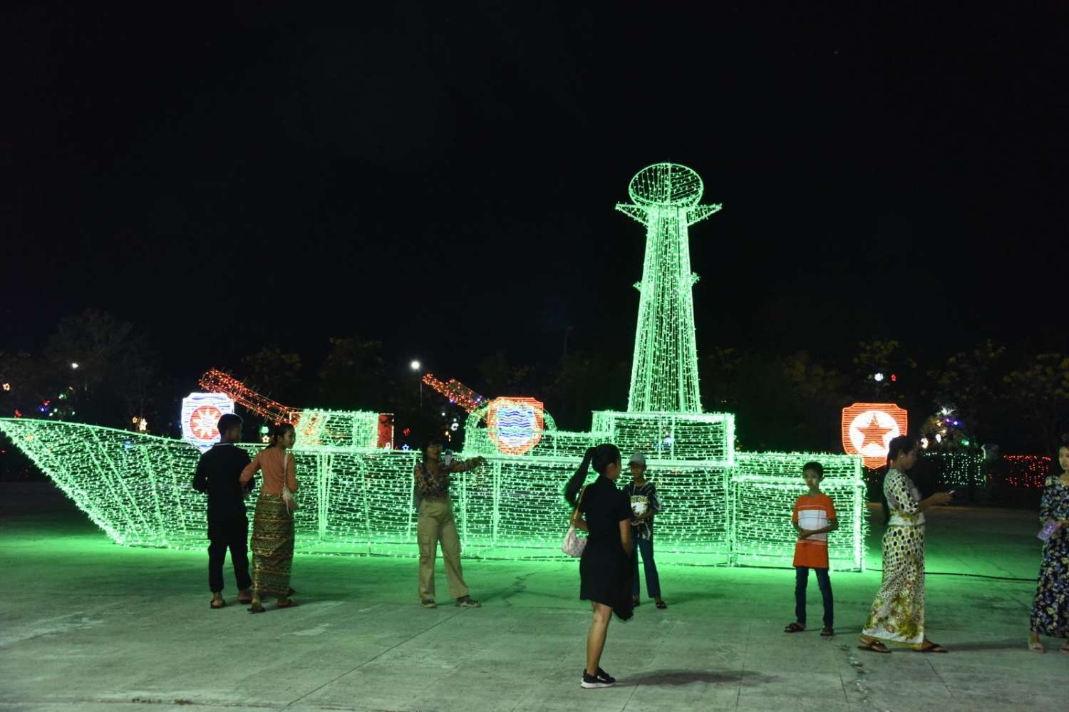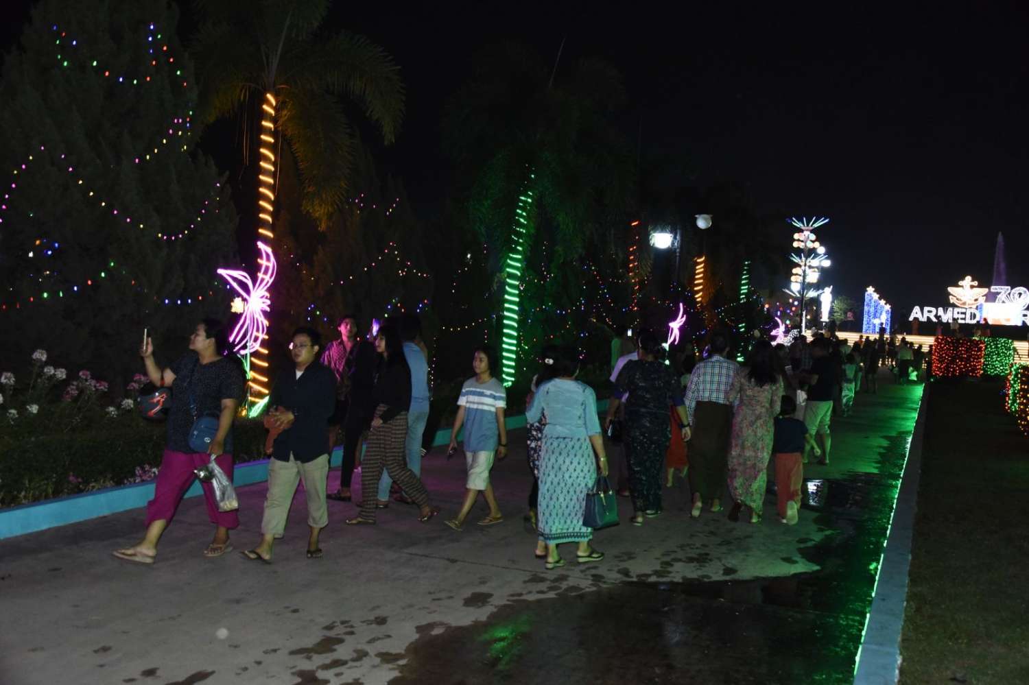 (၇၉) နှစ်မြောက်တပ်မတော်နေ့အား ဂုဏ်ပြုသောအားဖြင့် တိုင်းဒေသကြီးနှင့် ပြည်နယ်တို့၌လည်း မီးရောင်စုံများ၊ မီးအလှများဖြင့်ထွန်းညှိ၍ ဂုဏ်ပြုအလှဆင်မှုများ ပြုလုပ်ထားလျက်ရှိရာ အဆိုပါနေရာများသို့ လာရောက်အပန်းဖြေ လည်ပတ်ကြသူများဖြင့် စည်းကားလျက်ရှိကြောင်း သတင်းရရှိသည်။