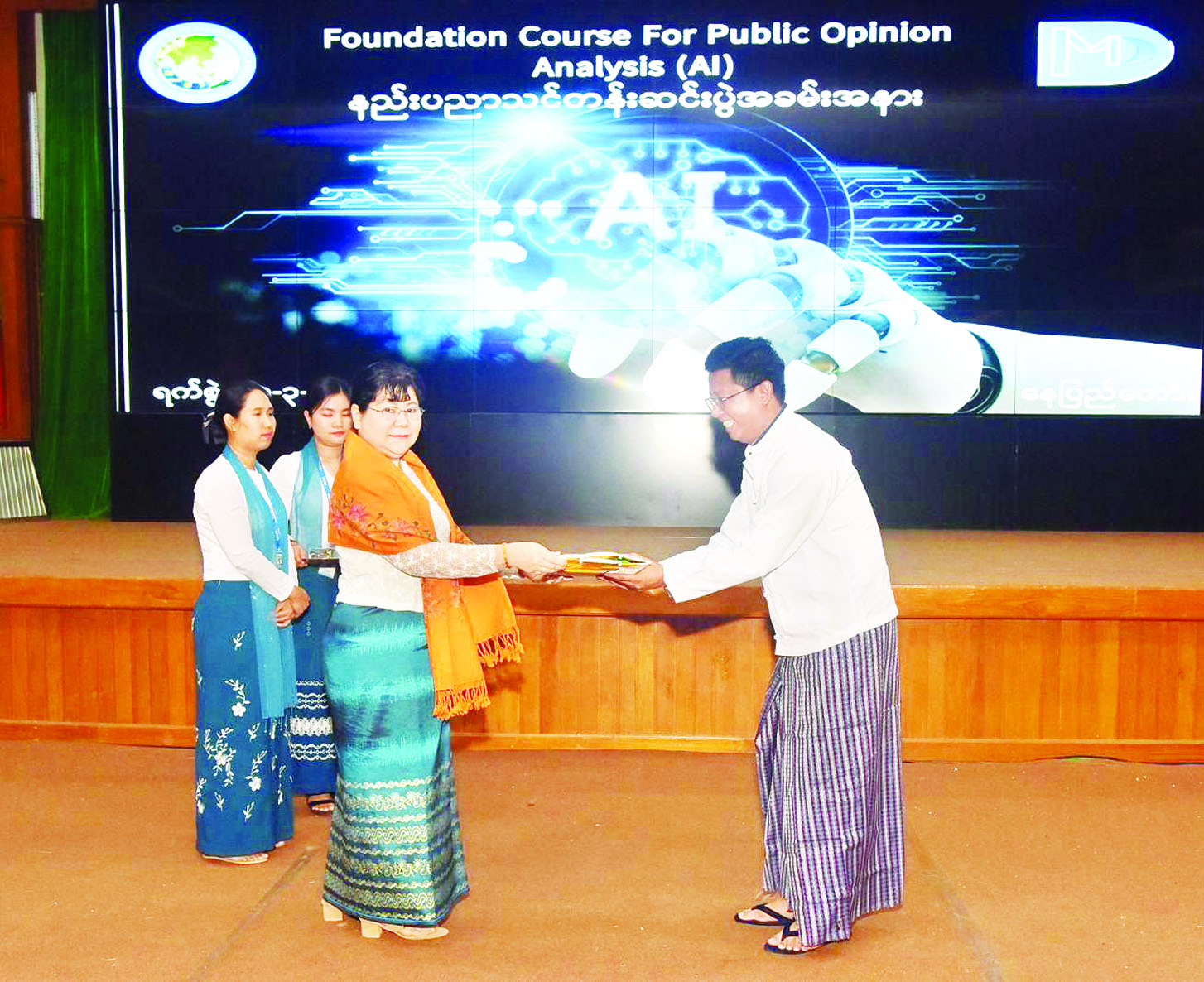 ပြန်ကြားရေးဝန်ကြီးဌာန မီဒီယာဖွံ့ဖြိုးတိုးတက်ရေးဦးစီးဌာန၏ Public Opinion Analysis (AI) နည်းပညာသင်တန်းဆင်းပွဲအခမ်းအနားကို ယနေ့နံနက် ၁၀ နာရီက ပြန်ကြားရေးဝန်ကြီးဌာန စုပေါင်းအစည်းအဝေးခန်းမ၌ ကျင်းပသည်။