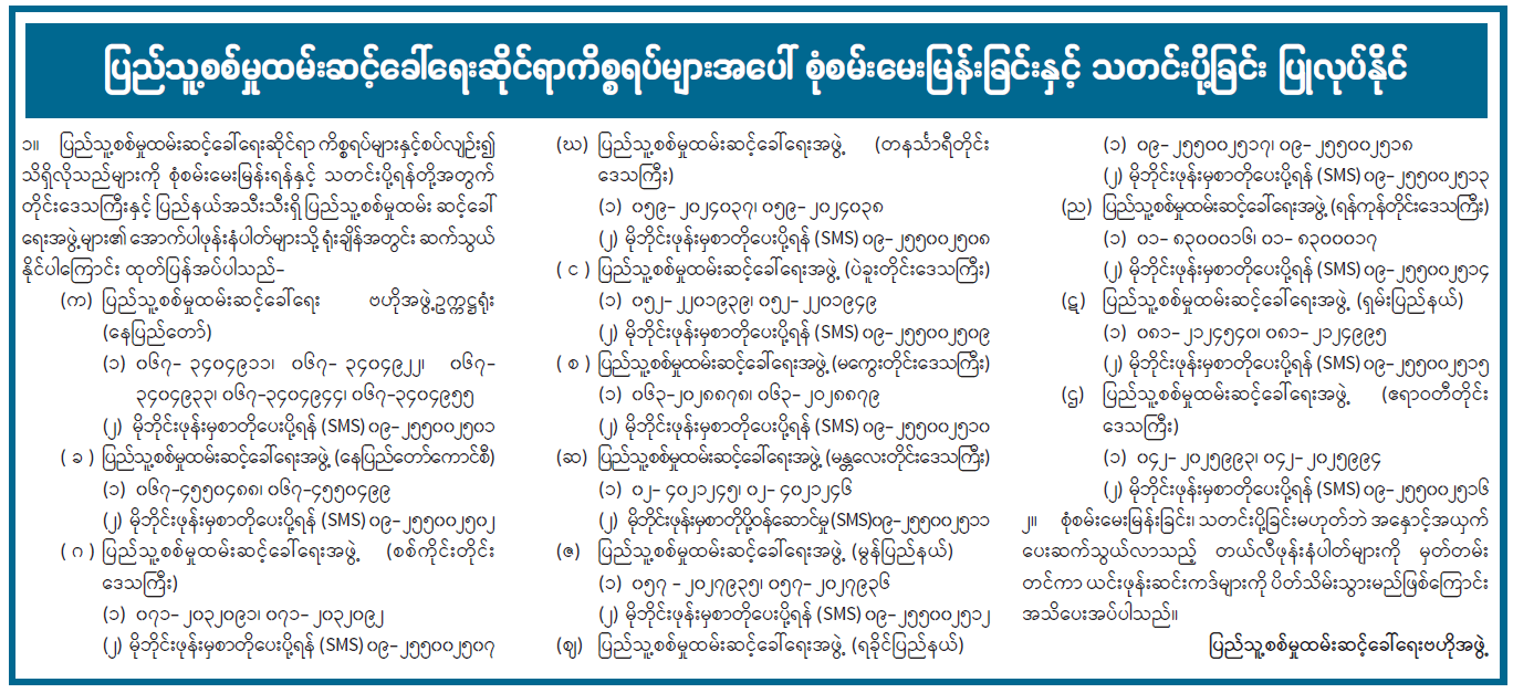 ပြည်သူ့စစ်မှုထမ်းဆင့်ခေါ်ရေးဆိုင်ရာ ကိစ္စရပ်များအပေါ် စုံစမ်းမေးမြန်းခြင်းနှင့် သတင်းပို့ခြင်း ပြုလုပ်နိုင် 03/29/2024