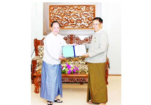 ဒုတိယဝန်ကြီးချုပ်နှင့် နိုင်ငံခြားရေးဝန်ကြီးဌာန ပြည်ထောင်စုဝန်ကြီး ဦးသန်းဆွေသည် ပြည်ထောင်စုသမ္မတ မြန်မာနိုင်ငံတော်ဆိုင်ရာ တောင်အာဖရိကနိုင်ငံ ဂုဏ်ထူးဆောင်ကောင်စစ်ဝန်အဖြစ် ခန့်အပ်ရန် သဘောတူညီပြီးဖြစ်သော ဦးမြင့်ဌေး၏ ခန့်အပ်လွှာကို ယနေ့ မွန်းလွဲ ၃ နာရီတွင် နေပြည်တော်ရှိ နိုင်ငံခြားရေးဝန်ကြီးဌာန ပြည်ထောင်စုဝန်ကြီး၏ ဧည့်ခန်းမ၌ လက်ခံ၍ ၎င်းအား အသိအမှတ်ပြု စာချွန်လွှာပြန်လည်ပေးအပ်သည်။