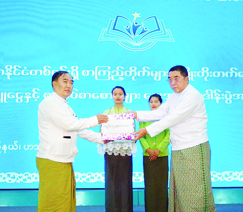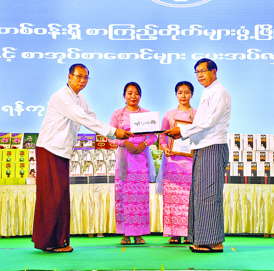 မြန်မာနိုင်ငံတစ်ဝန်းရှိ စာကြည့်တိုက်များ ဖွံ့ဖြိုးတိုးတက်ရေးအတွက် ကချင်ပြည်နယ် အစိုးရအဖွဲ့နှင့် အလှူရှင်များက ငွေကျပ်သိန်း ၁၀၀၊ ကယားပြည်နယ်အစိုးရအဖွဲ့နှင့် အလှူရှင်များက ငွေကျပ် ၁၆၅ သိန်းနှင့် စာအုပ်စာစောင် ၂၀၀၊ ကရင်ပြည်နယ်အစိုးရအဖွဲ့နှင့် အလှူရှင်များက ငွေကျပ် ၁၀၀၅၅၀၀၀ နှင့် စာအုပ်စာစောင် ၂၁၄၈ အုပ်၊ ချင်းပြည်နယ်အစိုးရအဖွဲ့နှင့် အလှူရှင်များက ငွေကျပ် ၁၂၇၈၀၀၀၀၊ စစ်ကိုင်းတိုင်းဒေသကြီး အစိုးရအဖွဲ့နှင့် အလှူရှင်များက ငွေကျပ် ၈၁၂၁၆၁၀၀ နှင့် စာအုပ်စာစောင် ၂၂၃၀၊ တနင်္သာရီ တိုင်းဒေသကြီးအစိုးရအဖွဲ့နှင့် အလှူရှင်များက ငွေကျပ် ၂၂၈၁၀၀၀၀ နှင့် စာအုပ်စာစောင် ၆၄၇ အုပ်၊ ပဲခူးတိုင်းဒေသကြီးအစိုးရအဖွဲ့နှင့် အလှူရှင်များက ငွေကျပ် ၄၂၃ သိန်းနှင့် စာအုပ်စာစောင် ၃၀၀၀၊ မကွေးတိုင်းဒေသကြီးအစိုးရအဖွဲ့နှင့် အလှူရှင်များက ငွေကျပ် ၃၂၃၉၀၀၀၀ နှင့် စာအုပ်စာစောင် ၃၅၆ အုပ်၊ မန္တလေးတိုင်းဒေသကြီးအစိုးရအဖွဲ့နှင့် အလှူရှင်များက ငွေကျပ် ၂၀၈၁၀၀၀၀ နှင့် စာအုပ် စာစောင် ၄၀၀၈ အုပ်၊ မွန်ပြည်နယ်အစိုးရအဖွဲ့နှင့် အလှူရှင်များက ငွေကျပ်သိန်း ၃၀၀ နှင့် စာအုပ် စာစောင် ၅၀၀၊ ရခိုင်ပြည်နယ်အစိုးရအဖွဲ့နှင့် အလှူရှင်များက ငွေကျပ် ၁၁၉ သိန်းနှင့် စာအုပ် စာစောင် ၂၉၇ အုပ်၊ ရန်ကုန်တိုင်းဒေသကြီးအစိုးရအဖွဲ့နှင့် အလှူရှင်များက ငွေကျပ် ၈၂၇၄၀၀၀၀ နှင့် စာအုပ်စာစောင် ၄၈၂၀၊ ရှမ်းပြည်နယ်အစိုးရအဖွဲ့ နှင့်အလှူရှင်များက ငွေကျပ် ၄၂၄၁၁၅၈၀ နှင့် စာအုပ် စာစောင် ၂၀၃၅ အုပ်၊ ဧရာဝတီတိုင်းဒေသကြီး အစိုးရအဖွဲ့နှင့် အလှူရှင်များက ငွေကျပ် ၉၁၆၅၀၀၀ နှင့် စာအုပ်စာစောင် ၁၀၆၁၃ အုပ်တို့ကို ပေးအပ်လှူဒါန်းကြရာ တိုင်းဒေသကြီး၊ ပြည်နယ်ဝန်ကြီးချုပ်နှင့် တာဝန်ရှိသူများကလက်ခံပြီး ဂုဏ်ပြုမှတ်တမ်းလွှာများ ပြန်လည်ပေးအပ်ခဲ့ကြသည်။