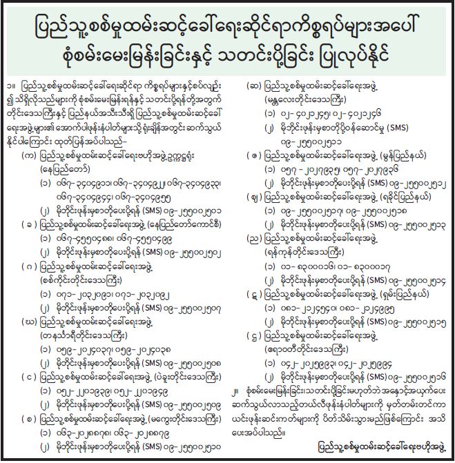 ပြည်သူ့စစ်မှုထမ်းဆင့်ခေါ်ရေးဆိုင်ရာကိစ္စရပ်များအပေါ် စုံစမ်းမေးမြန်းခြင်းနှင့် သတင်းပို့ခြင်း ပြုလုပ်နိုင် 04/11/2024