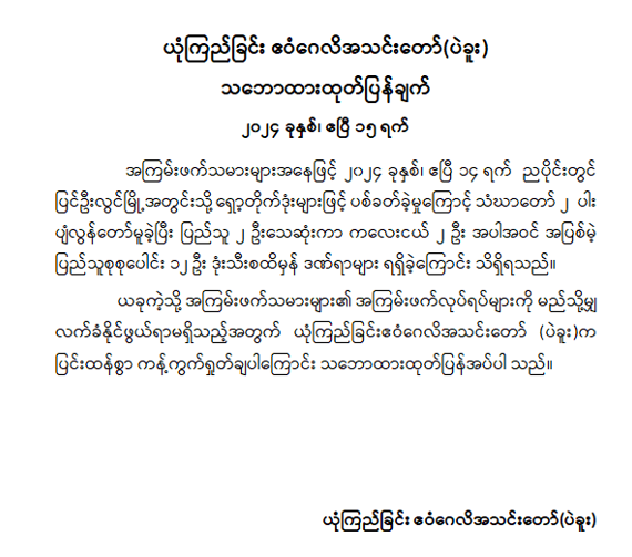 ဝန်ကြီးဌာန ကြေညာချက်များ