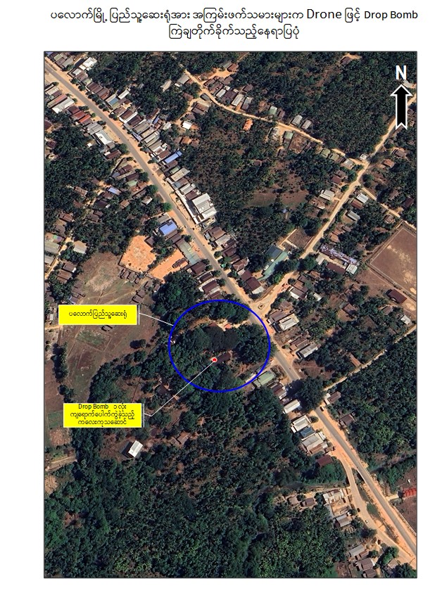 ဖြစ်စဉ်မှာ ယနေ့ညနေ ၄ နာရီခန့်တွင် ပုလောမြို့နယ်၊ ပလောက်မြို့ ပြည်သူ့ဆေးရုံအား အကြမ်းဖက်သမားများက ဆေးရုံ၏အရှေ့မြောက်ဘက် မီတာ ၁၅၀၀ ခန့်အကွာမှနေ၍ Drone ဖြင့် Drop Bomb ၁ လုံး လာရောက်ပစ်ချတိုက်ခိုက်ခဲ့သဖြင့် ဆေးရုံ၏ ကလေးကုသဆောင်ပေါ်သို့ ကျရောက်ပေါက်ကွဲခဲ့ပြီး အဆိုပါကလေးကုသဆောင်၌ ဆေးရုံတက်ရောက်ကုသနေသည့် ကလေးငယ် ၁ ဦးနှင့် လူနာစောင့် အပြစ်မဲ့ဒေသခံပြည်သူ ၆ ဦး ထိခိုက်ဒဏ်ရာရရှိခဲ့ကြောင်း သိရှိရသည်။