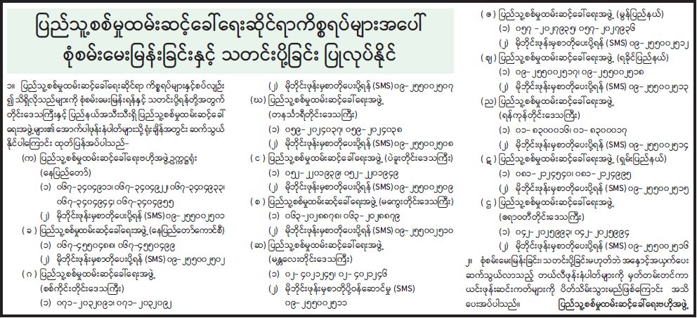 ပြည်သူ့စစ်မှုထမ်းဆင့်ခေါ်ရေးဆိုင်ရာကိစ္စရပ်များအပေါ် စုံစမ်းမေးမြန်းခြင်းနှင့် သတင်းပို့ခြင်း ပြုလုပ်နိုင် 04/25/2024