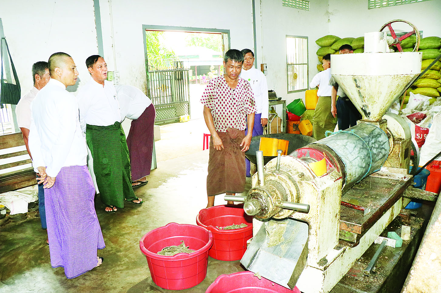 သမဝါယမနှင့် ကျေးလက်ဖွံ့ဖြိုးရေးဝန်ကြီးဌာန ပြည်ထောင်စုဝန်ကြီး ဦးလှမိုးသည် ယနေ့ မွန်းလွဲပိုင်းက ညွှန်ကြားရေးမှူးချုပ်များ၊ သက်ဆိုင်ရာတာဝန်ရှိ သူများနှင့်အတူ လယ်ဝေးမြို့နယ် ရုံးတောကျေးရွာ၌ ရွှေဝါထွန်း(၂) စိုက်ပျိုးထုတ်လုပ်ရေး သမဝါယမ အသင်း၏ အသင်းပိုင်မြေ ၁၅ ဧကပေါ်တွင် ရုရှားသဘာဝမြေဩဇာအသုံးပြု၍ စမ်းသပ်စိုက်ပျိုးခြင်းမှ ထွက်ရှိသည့် မြန်မာနေကြာမျိုးနှင့် ရုရှားနေကြာစေ့များ ကြိတ်ခွဲဆောင်ရွက်နေမှု အခြေအနေများကို ကြည့်ရှုစစ်ဆေးသည်။