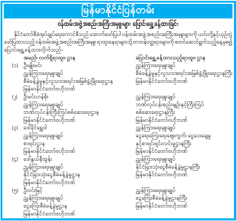 ဝန်ကြီးဌာန ကြေညာချက်များ