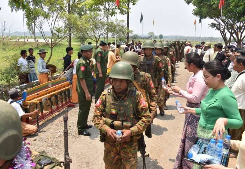 နိုင်ငံတော်တည်ငြိမ်ရေးနှင့် နယ်မြေအေးချမ်းသာယာရေးတို့အတွက် စစ်ဆင်ရေးတာဝန်များကို ထမ်းဆောင်ခဲ့သည့် ရှေ့တန်းပြန်နိုင်ငံ့သားကောင်းတပ်မတော်သားများအား သောင်းသောင်းဖြဖြ ဂုဏ်ပြုကြိုဆို