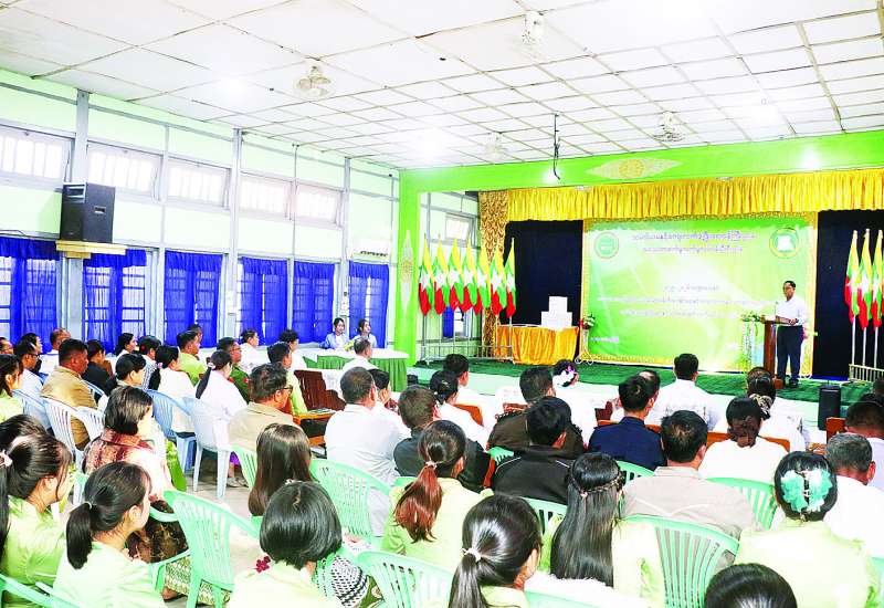ဆက်လက်၍ ပြည်ထောင်စုဝန်ကြီးနှင့် မြန်မာနိုင်ငံဆိုင်ရာ လာအိုပြည်သူ့ဒီမိုကရက်တစ်သမ္မတ နိုင်ငံသံအမတ်ကြီးတို့က လာအိုပြည်သူ့ဒီမိုကရက်တစ်သမ္မတနိုင်ငံ တည်ထောင်သည့် နှစ်(၅၀)ပြည့်နှစ်ပတ်လည်နှင့် မြန်မာ-လာအို နှစ်နိုင်ငံအကြား သံတမန်ဆက်ဆံရေးထူထောင်မှု နှစ်(၇၀)ပြည့် နှစ်ပတ်လည်အထိမ်းအမှတ်ကိတ်ကို လှီးဖြတ်ပေးပြီး ဧည့်ခံပွဲအခမ်းအနားသို့ တက်ရောက်လာကြသူများနှင့်အတူ စုပေါင်းမှတ်တမ်းတင် ဓာတ်ပုံရိုက်ကြသည်။