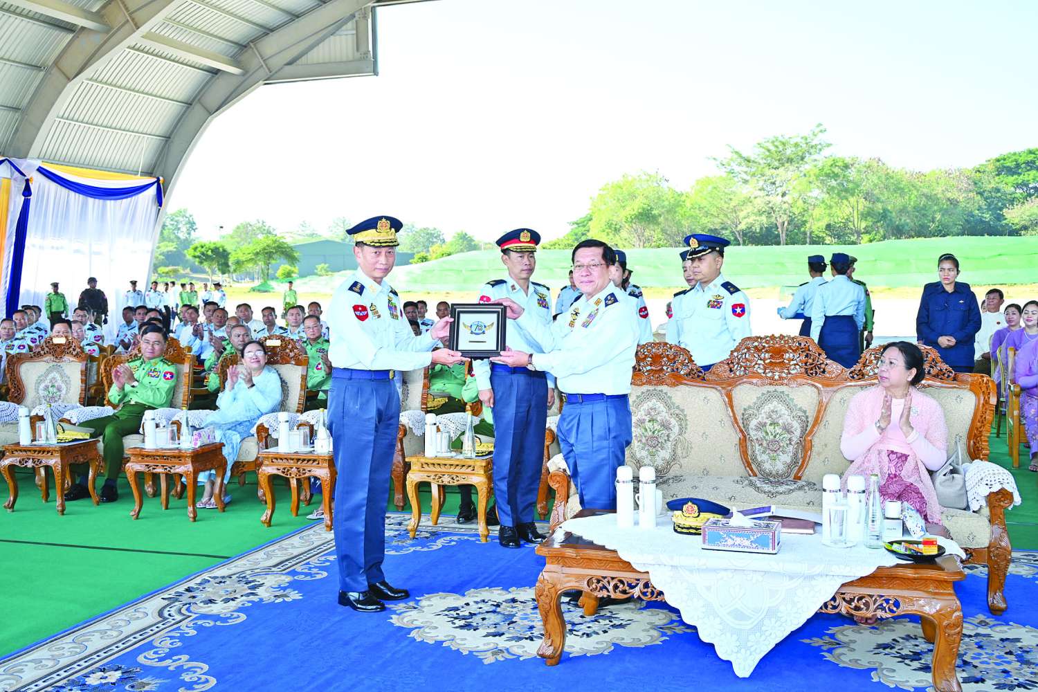 ပြည်ထောင်စုသမ္မတမြန်မာနိုင်ငံတော်၊ တပ်မတော် (လေ) ဖွဲ့စည်းတည်ထောင်မှု (၇၈) နှစ်မြောက် နှစ်ပတ်လည်နေ့ အခမ်းအနားကို ယနေ့နံနက်ပိုင်းတွင် နေပြည်တော်လေတပ်စခန်းဌာနချုပ်၌ ကျင်းပပြုလုပ်ရာ နိုင်ငံတော်လုံခြုံရေးနှင့် အေးချမ်းသာယာရေးကော်မရှင်ဥက္ကဋ္ဌ တပ်မတော်ကာကွယ်ရေးဦးစီးချုပ် ဗိုလ်ချုပ်မှူးကြီး မင်းအောင်လှိုင် တက်ရောက်ချီးမြှင့်သည်။
